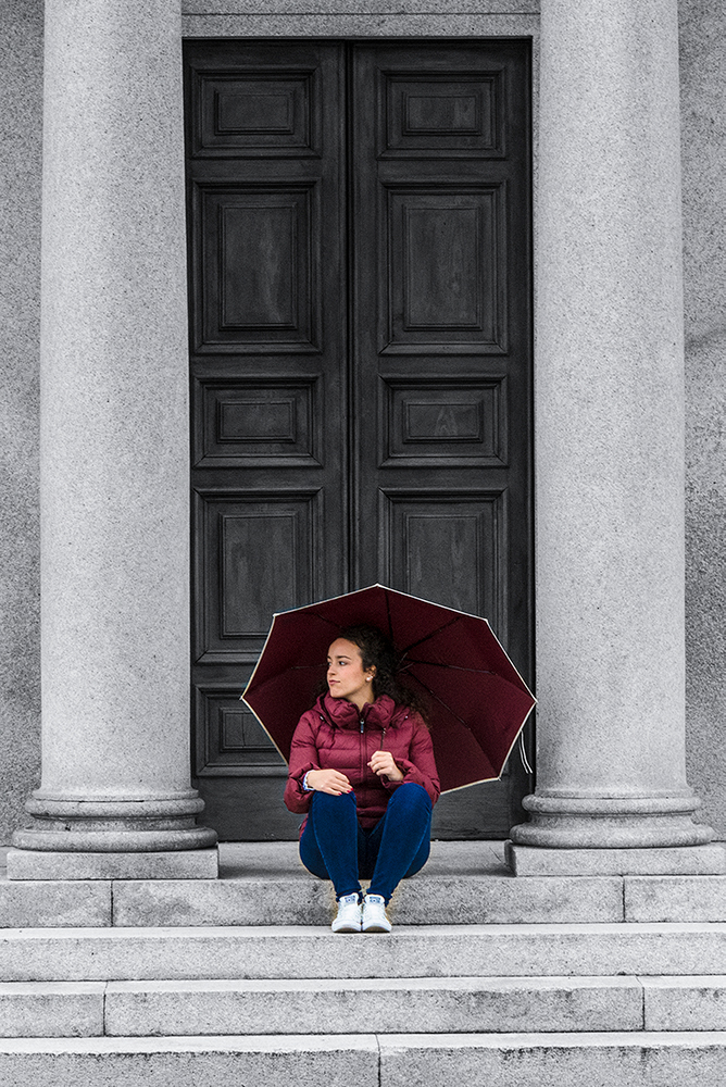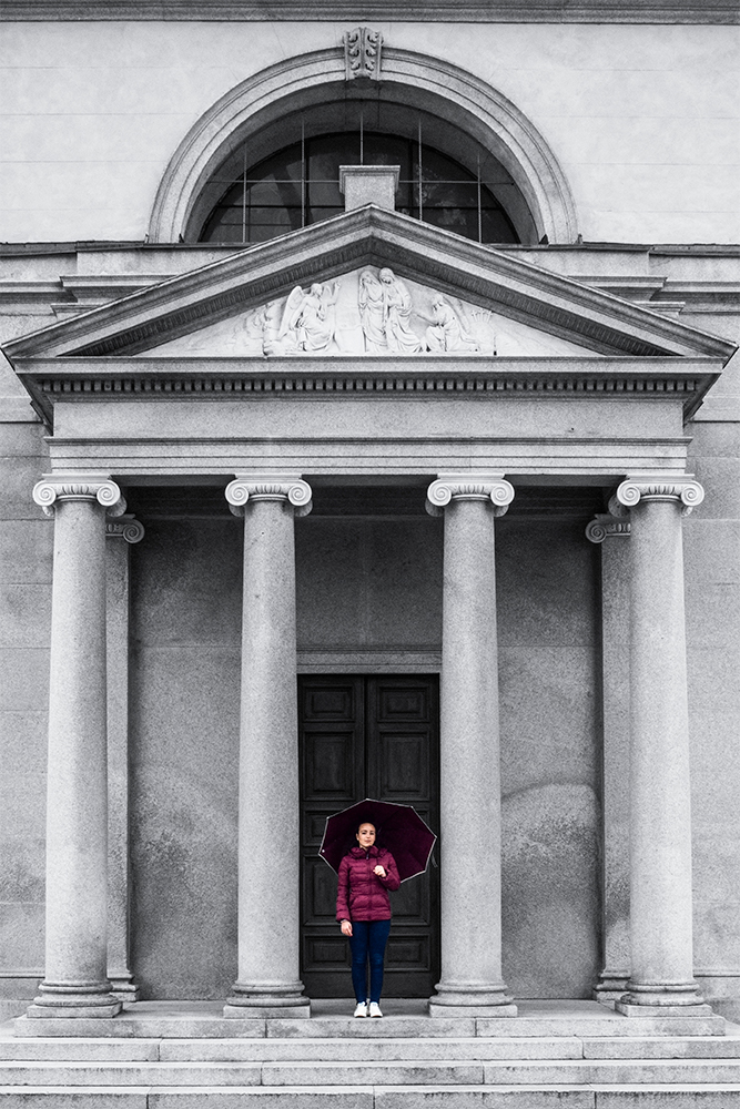 A series of three photographs that show the contrast between a human being and an architectural structure.